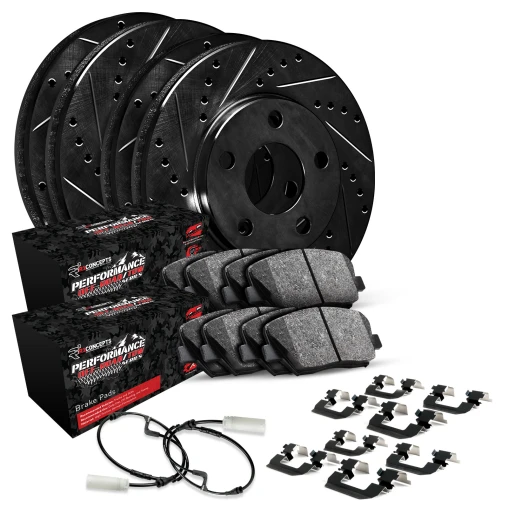 Cross-Drilled and Diamond Slotted Brake Rotors. It provides the maximum benefits in stopping power, durability, and performance.